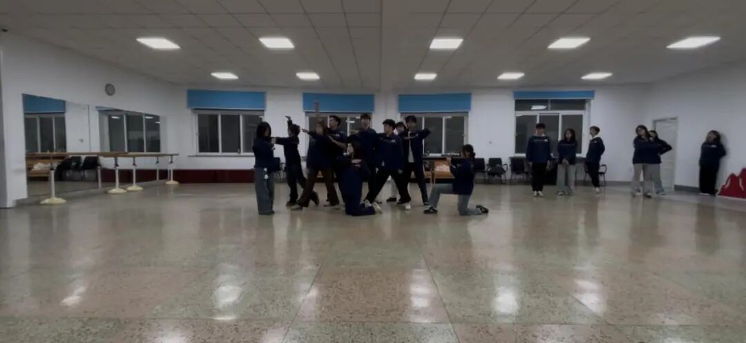 每一分钟的精彩绽放,背后是无数个夜晚的反复打磨。同学们常常搭乘跨校区班车赶来排练,在训练室里踩着音乐的节拍,一遍又一遍地调整动作、对齐队形。一个转身的角度、一次抬手的高度,都要经过反复校准。
