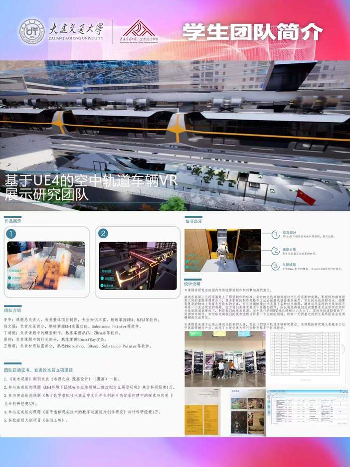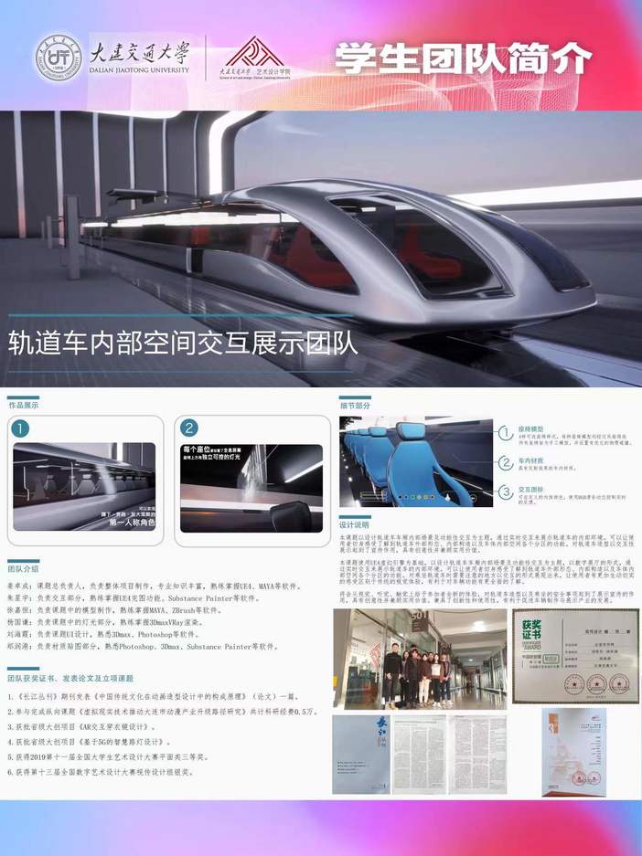为进一步拓展产教融合的深度与广度,提升协同育人的针对性和实效性,学院通过校企合作“平台课程”实现“专业技能与实际项目”融合培养的新举措,并通过跨领域多专业“赛教课题”完成创新人才拔高培养机制,形成服务于“轨道交通设计领域”的VR/UI设计人才培养模式。实践成果集聚促进产教融合的专业、团队、基地、项目、管理等多种创新资源与要素,提升以应用为驱动的数字化设计创新能力,使学生毕业后能够很快地适应产业岗位需求,降低企业人才培养成本,拓宽设计就业渠道。