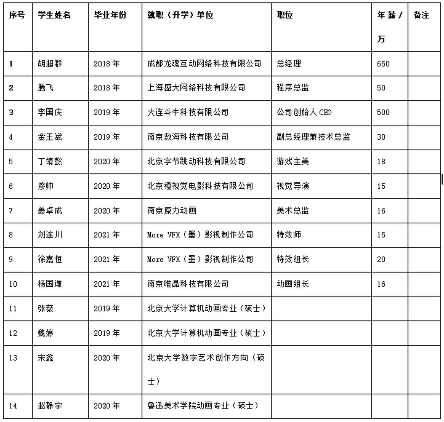 动画专业培养出来的优秀毕业生。